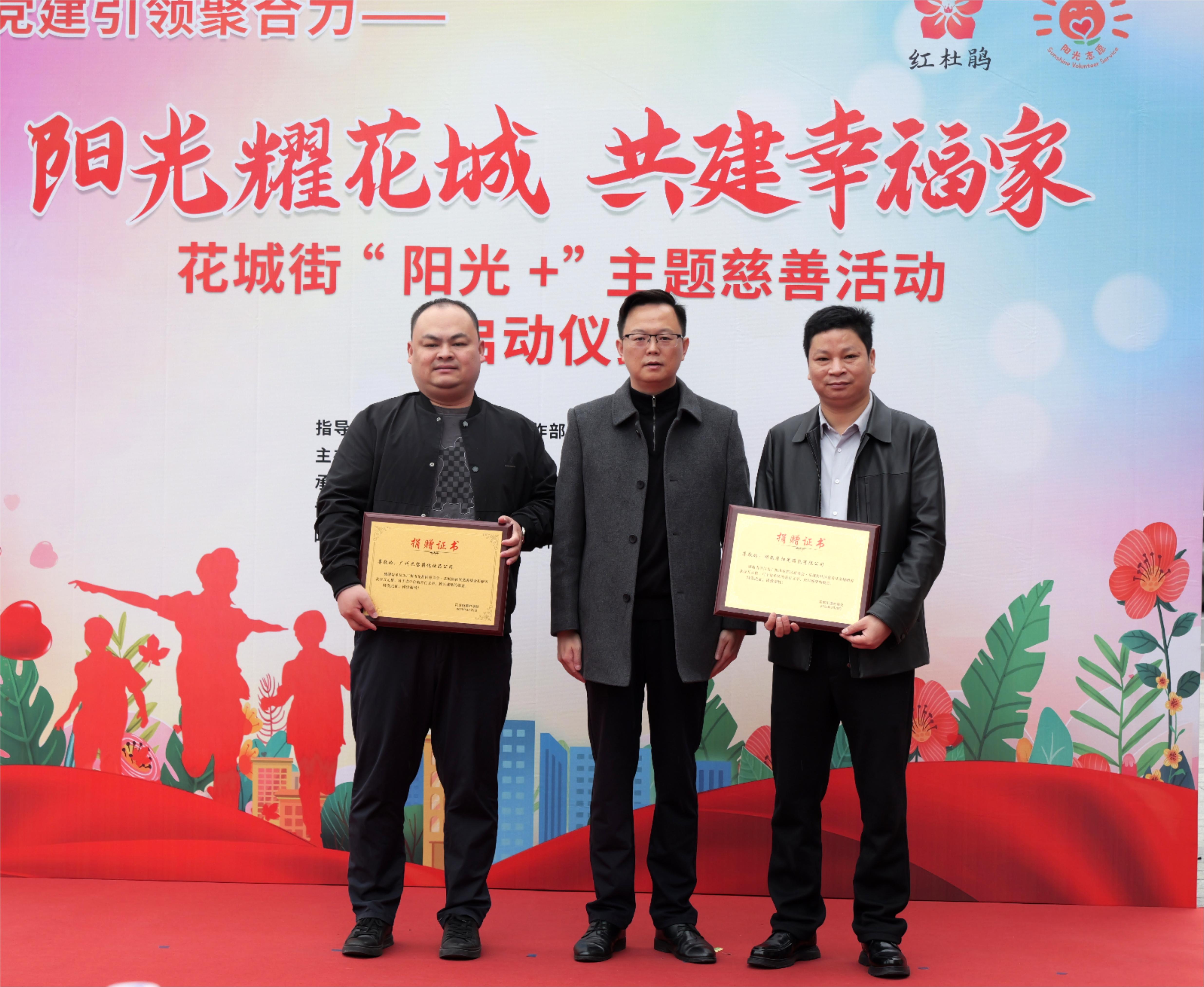 花城街黨工委委員劉冬胤為愛心企業代表頒發感謝狀